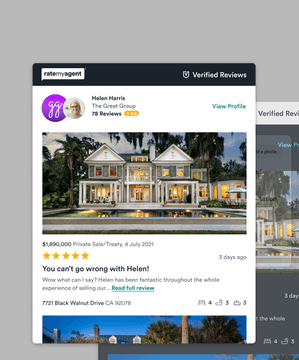 It's not just about getting reviews, it's about using them to earn more business. RateMyAgent's marketing solutions empower agents to collect, control and elevate their reviews, so they can build trust with the right people.